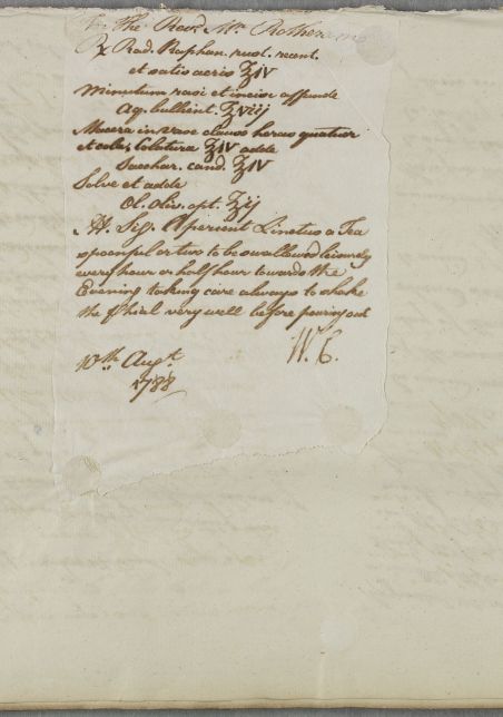 [ID:5693] From: Dr William Cullen (Professor Cullen) / To: Dr John Sharp / Regarding: Reverend Rotherham (Patient) / 10 August 1788 / (Outgoing)