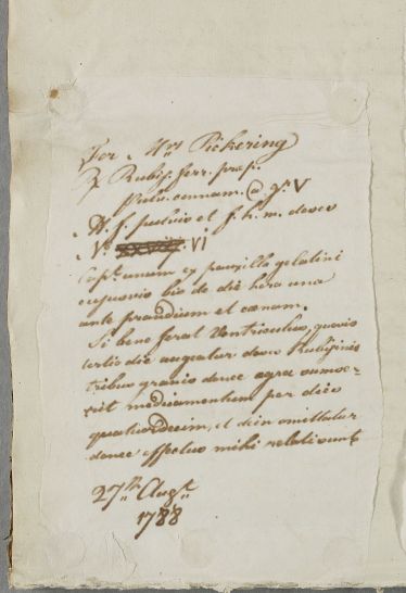 [ID:5702] From: Dr William Cullen (Professor Cullen) / To: Mr / Regarding: Mrs Pickering (Patient) / 27 August 1788 / (Outgoing)