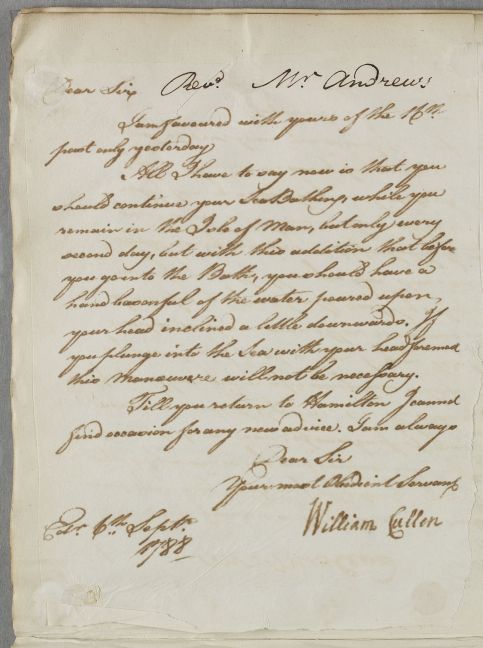 [ID:5710] From: Dr William Cullen (Professor Cullen) / To: Reverend William Andrews (of Woodsyde) / Regarding: Reverend William Andrews (of Woodsyde) (Patient) / 6 September 1788 / (Outgoing)