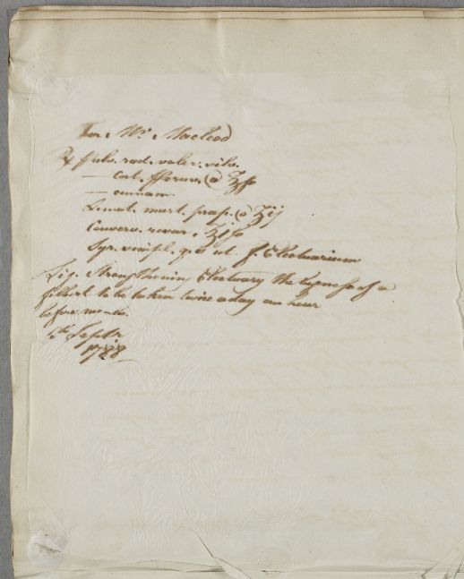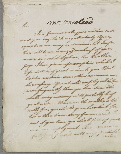| Summary | Letter to Mr Macleod concerning his own case, pp.604-5. Letter and recipe unsigned. |