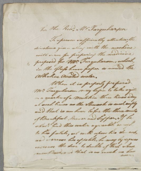 Case of the Revd. Mr. Farquharson who has already been given a medicine to take for an unstated disorder. |