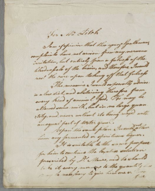 Case of young Mr Leitch [Litch], who is diagnosed as having a 'fullness of the bloodvessels of the brain'. |