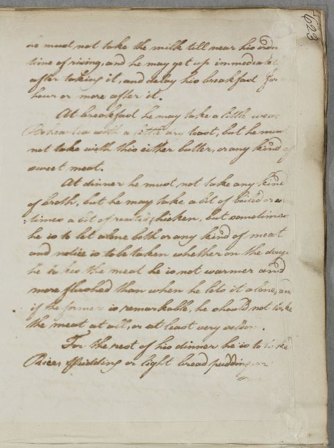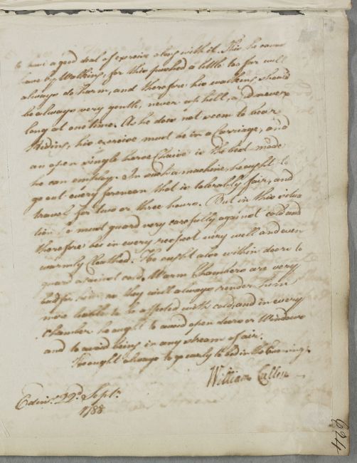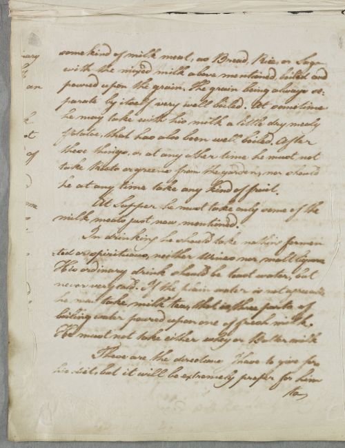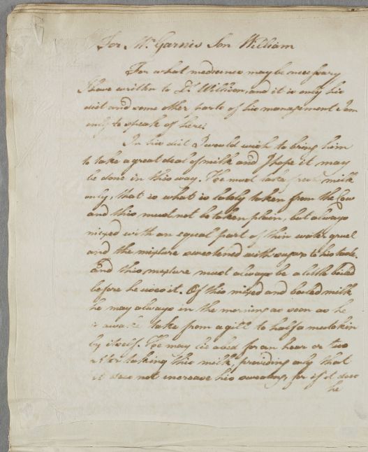 | Summary | Reply headed 'For Mr Garnis Son William'. Mainly dietary and exercise advice, possibly sent to the father, as Cullen writes that he has already written to Dr Willison (Dundee physician) about medicines. The destination is inferred from Willison being the physician on the case, and the recipient of Doc ID 5724, and the recipient of this letter is inferred from Doc ID 5724. |