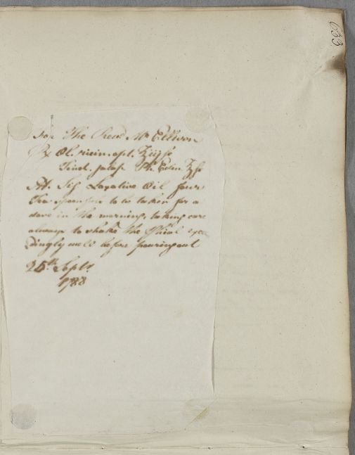 [ID:5725] From: Dr William Cullen (Professor Cullen) / To: Reverend John Ellison / Regarding: Reverend John Ellison (Patient) / 25 September 1788 / (Outgoing)