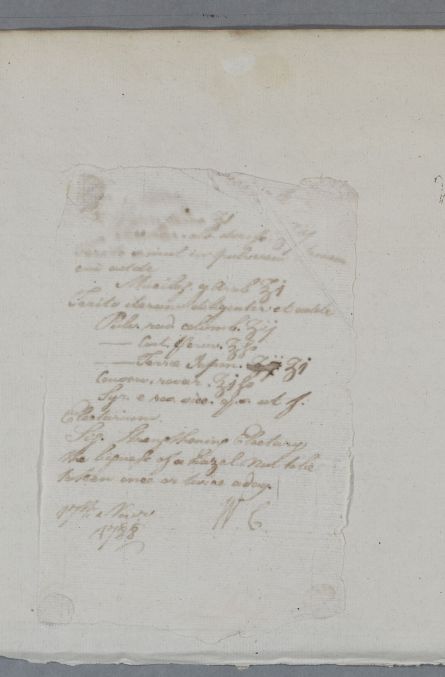 Case of [Mrs?] J. Tweeddell [Tweedale]. who has a weak stomach. |