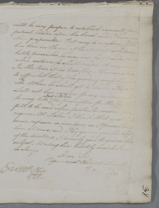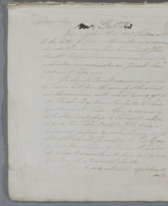 | Summary | Reply to William Ingham concerning the case of Mr Surtees. Cullen recommends that he spend the winter in Lisbon, and advises on travelling via London and Falmouth from Newcastle. |
