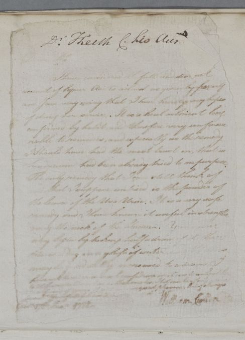 | Summary | Reply to Dr Dr Keith concerning the case of his aunt. The aunt has bowel ailment. Poor copy. |