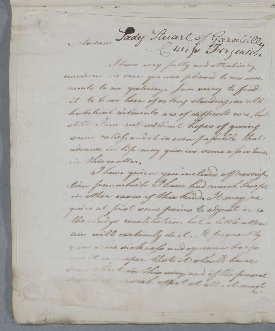 | Summary | Reply to Lady Stewart of Grandtully concerning the case of Miss Ferguson (possibly one of her nieces). |