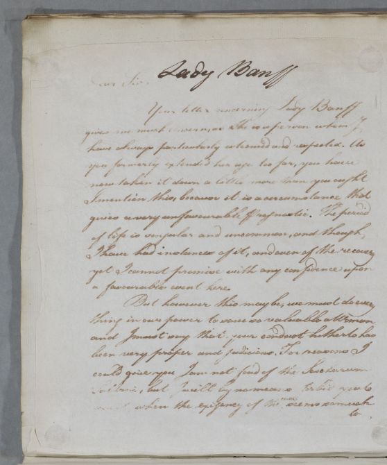 | Summary | Reply [to Dr Abernethie] concerning the case of Lady Banff. |