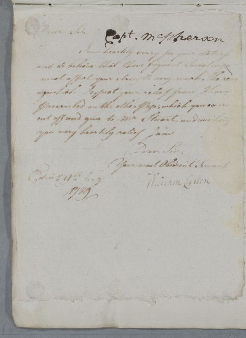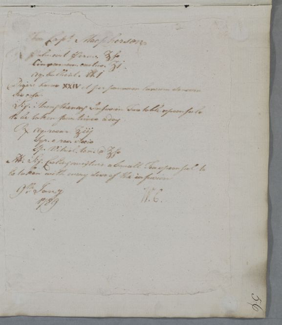 [ID:5769] From: Dr William Cullen (Professor Cullen) / To: Ensign Robert Campbell MacPherson (of Bialidmore or Bellidmore near Ruthven, Captain McPherson) / Regarding: Ensign Robert Campbell MacPherson (of Bialidmore or Bellidmore near Ruthven, Captain McPherson) (Patient) / 9 January 1789 / (Outgoing)