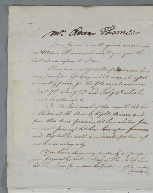| Summary | Reply [to James Henderson] concerning the case of Mr Adam Thomson. |