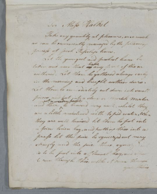 Case of Miss Halket who is given detailed instructions on preparing Tussilago leaves (Coltsfoot), for the treatment of her 'hectic' (i.e. consumptive) condition. |