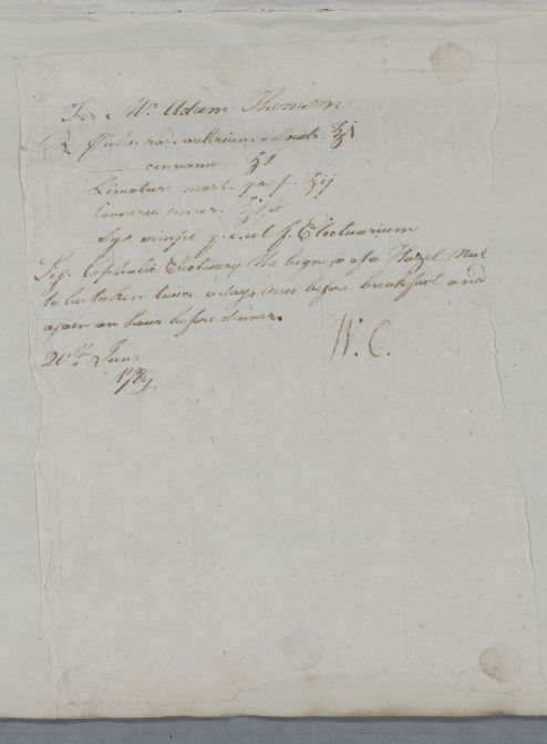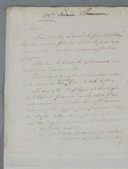[ID:5837] From: Dr William Cullen (Professor Cullen) / To: Mrs Thomson / Regarding: Mr Adam Thomson (Patient) / 20 June 1789 / (Outgoing)