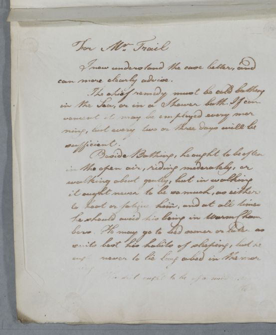 Case of Mr Trail, who is advised to take up cold bathing and follow a strengthening regimen. |