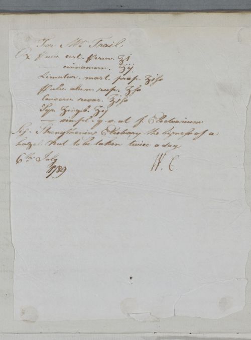 [ID:5851] From: Dr William Cullen (Professor Cullen) / To: [ADDRESSEE UNKNOWN] / Regarding: Mr Trail (Patient) / 6 July 1789 / (Outgoing)
