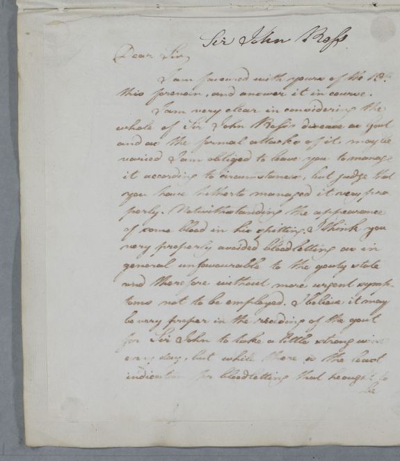 Case of Sir John Ross, an elderly gentleman with a complex history of gout, a cough and a palsy prompted by the news that his son had lost a hand in an accident. |