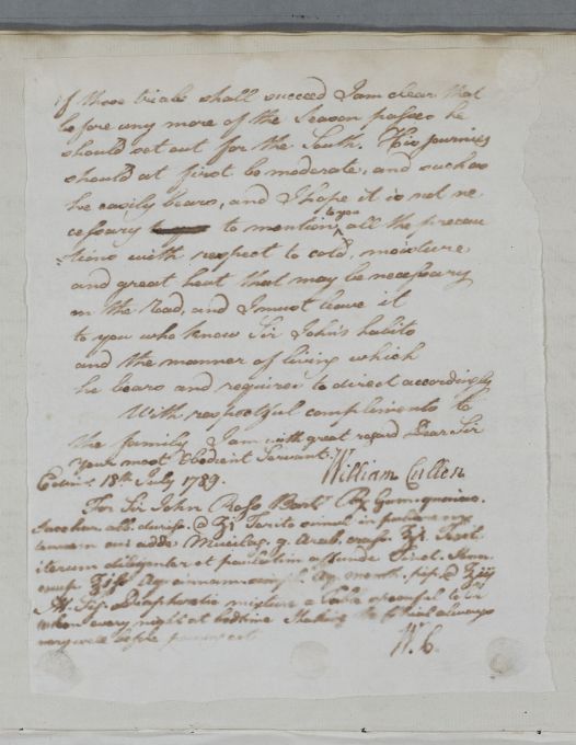 [ID:5858] From: Dr William Cullen (Professor Cullen) / To: Mr John McFarquhar (Farquharson) / Regarding: Sir John Ross (Patient) / 18 July 1789 / (Outgoing)