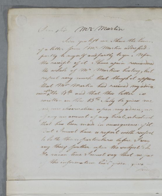 Letter concerning the case of Mr Martin, in response to 'a letter from Mr Martin addressed partly to myself and partly to you'.