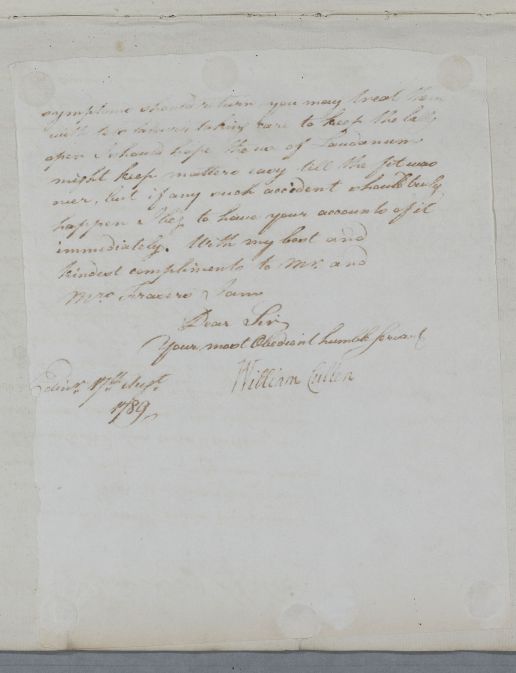[ID:5872] From: Dr William Cullen (Professor Cullen) / To: Dr James Robertson / Regarding: Mrs Jane Fraser (of Relick) (Patient) / 17 August 1789 / (Outgoing)