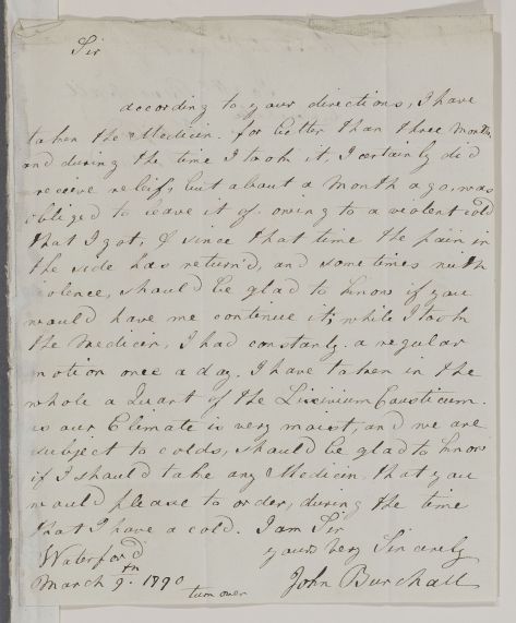 [ID:5883] From: Captain John Burchall (Mr. Burchell) / To: Dr William Cullen (Professor Cullen) / Regarding: Captain John Burchall (Mr. Burchell) (Patient) / 9 March 1790 / (Incoming)