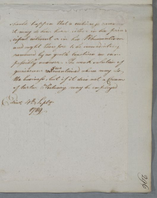 [ID:5887] From: Dr William Cullen (Professor Cullen) / To: [ADDRESSEE UNKNOWN] / Regarding: Captain Charles Wedderburn (Patient) / 4 September 1789 / (Outgoing)