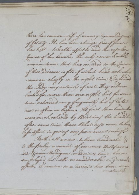Case of Lady Grace Campbell who is generally deprived of her 'powers' and suffers vertigo, headaches and other 'nervous' symptoms [see earlier Case 340]. |
