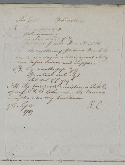 [ID:5890] From: Dr William Cullen (Professor Cullen) / To: [ADDRESSEE UNKNOWN] / Regarding: Captain George Keith Elphinstone (1st Baron Keith (three times); Viscount Keith) (Patient) / 7 September 1789 / (Outgoing)