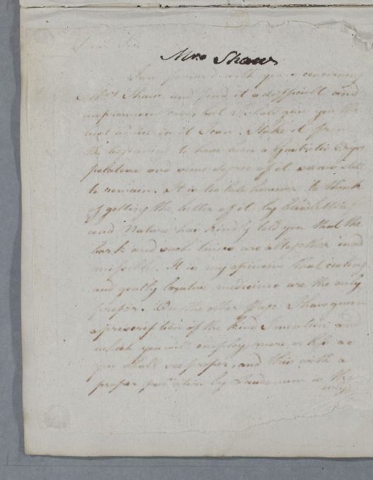 [ID:5891] From: Dr William Cullen (Professor Cullen) / To: Mr W. White / Regarding: Mrs Shaw (Patient) / 8 September 1789 / (Outgoing)