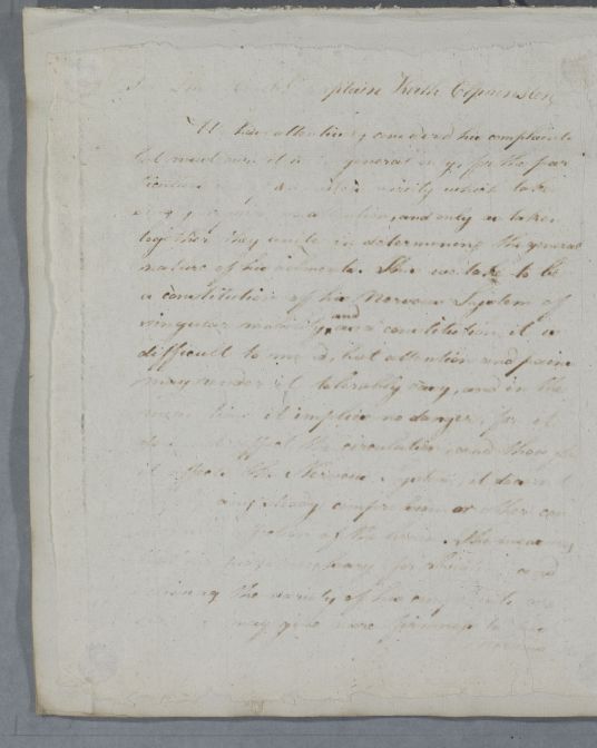 Case of Captain Keith Elphinstone who is advised on managing a 'nervous' complaint (details hard to decipher from a poor copy). |
