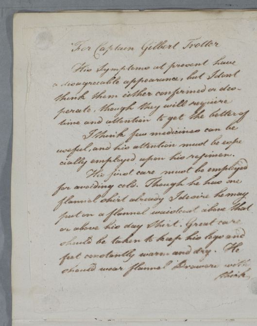 Case of Captain Gilbert Trotter who is advised on regimen for an unspecified condition, probably consumptive. |