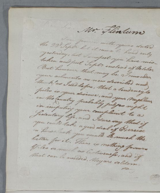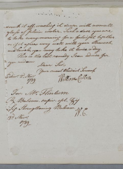 [ID:5907] From: Dr William Cullen (Professor Cullen) / To: Mr William Flintum / Regarding: Mr William Flintum (Patient) / 2 November 1789 / (Outgoing)