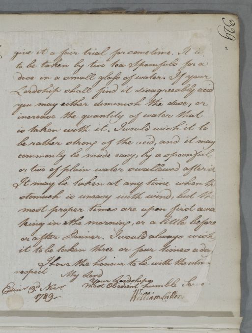 [ID:5908] From: Dr William Cullen (Professor Cullen) / To: Earl Charles Mordaunt / Regarding: Earl Charles Mordaunt (Patient) / 3 November 1789 / (Outgoing)