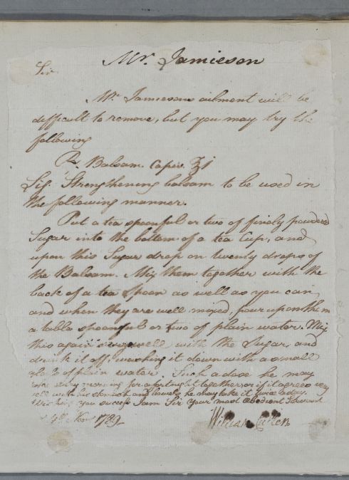 [ID:5909] From: Dr William Cullen (Professor Cullen) / To: Mr Anthony Harrison / Regarding: Mr Jameson (Jamieson) (Patient) / 4? November 1789 / (Outgoing)