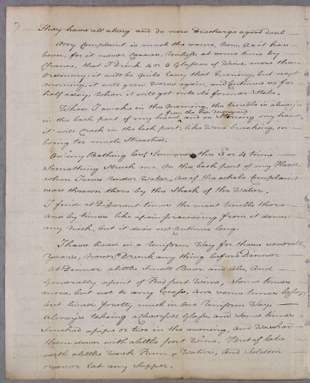 | Summary | Letter from Mr William Kirsopp of Hexham concerning his own case, 'a continual whising or Noise in the Head like a pann simmering before it Boiles'. assumed to be an authorial original because of the first-person voice and the distinctive handwriting, but there's no wrapper and from the folds (vertical only ) it does not appear to have been folded so as to be sealed and sent (so likely to have been hand-delivered). |
