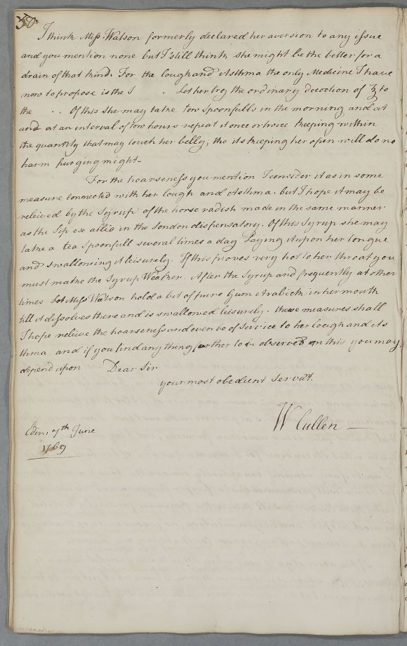 The Consultation Letters of Dr William Cullen (1710-1790) at the Royal College of Physicians of Edinburgh
