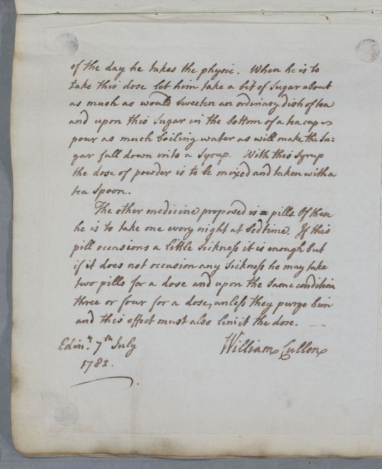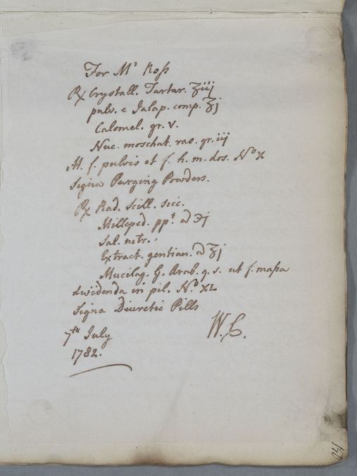 [ID:596] From: Dr William Cullen (Professor Cullen) / To: Dr Thomas Livingston / Regarding: Mr James Ross (Patient) / 7 July 1782 / (Outgoing)