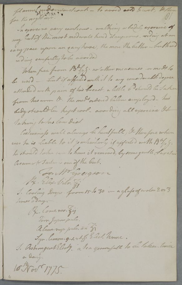 [ID:5975] From: Dr William Cullen (Professor Cullen) / To: [ADDRESSEE UNKNOWN] / Regarding: Mr Greigson (Patient) / 10 November 1775 / (Outgoing)