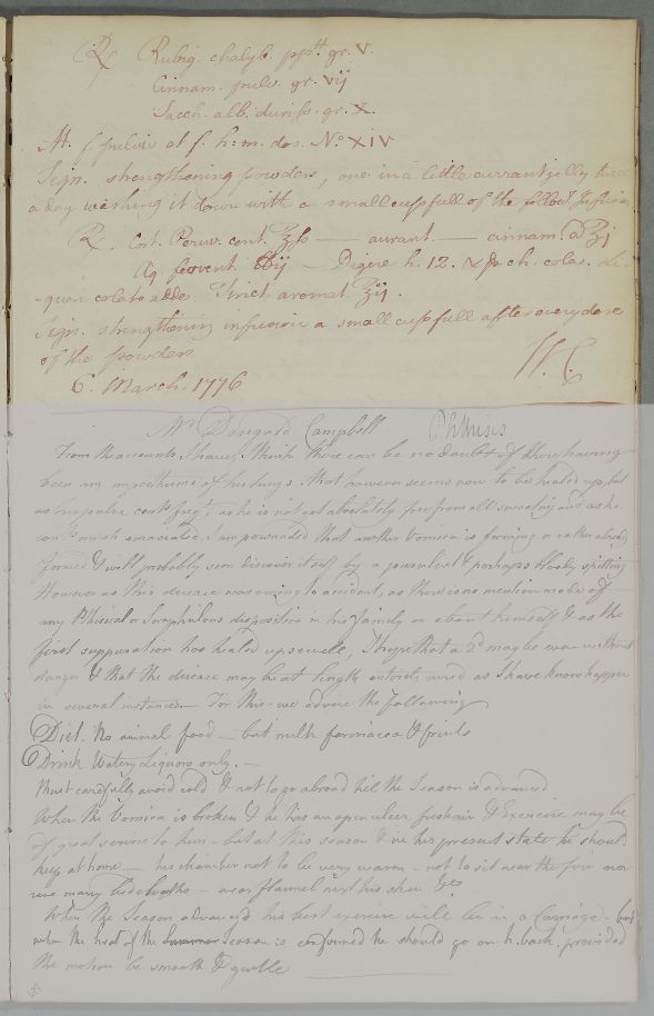 [ID:5988] From: Dr William Cullen (Professor Cullen) / To: Dr / Regarding: Mr John Henderson (Patient) / 6 March 1776 / (Outgoing)