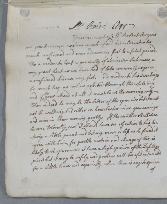 Reply, 'Mr Robert Orr', whose consumptive ailment Cullen believes is 'advancing fast even to a fatal period' because of his worsening sweats.
