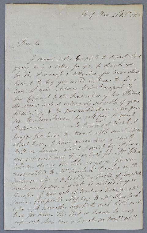 | Summary | Letter from Richard Betham to Henry Cullen concerning his son Campbell, thanking Henry 'for the kindness & attention you have given him'. |