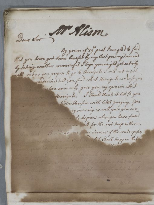 | Summary | Reply to Mr Alison who plans to travel to 'Harrigate', giving instructions for bathing. |
