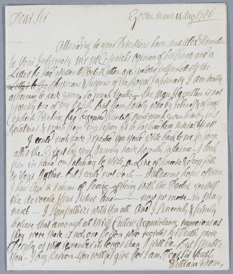 [ID:6149] From: Reverend William Thom (of Govan) / To: Dr Henry Cullen (Harry, Dr Henry, "the young doctor" ) / Regarding: Mr Alexander Hamilton (Patient) / 14 August 1786 / (Misc)