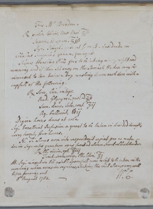 [ID:615] From: Dr William Cullen (Professor Cullen) / To: [ADDRESSEE UNKNOWN] / Regarding: Mr George Burdon (Patient) / August? 1782? / (Outgoing)