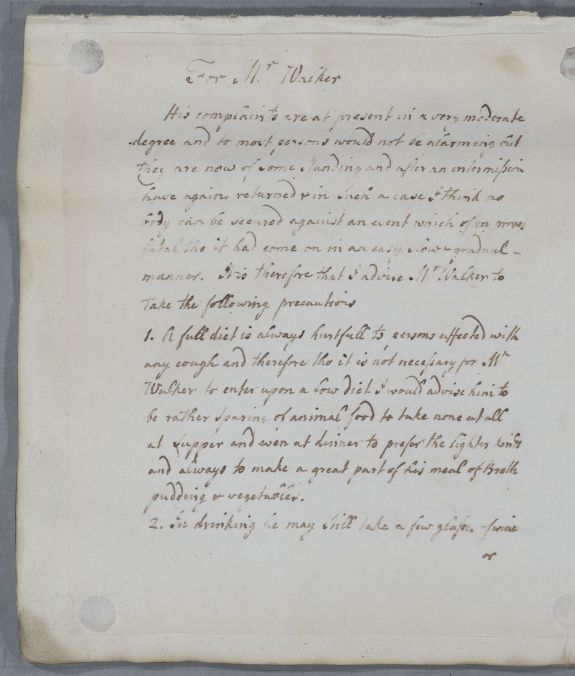 | Summary | Directions for Mr Walker, whose complaints Cullen believes are 'at present in a very moderate degree'. |