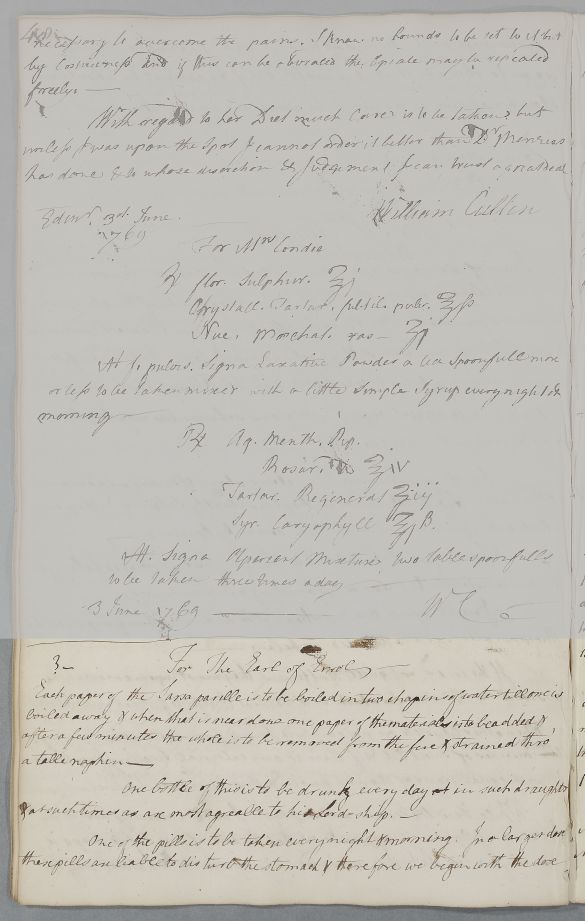 [ID:62] From: Dr William Cullen (Professor Cullen) / To: [ADDRESSEE UNKNOWN] / Regarding: Earl James Boyd Hay (15th Earl of Erroll, Lord Erroll, Lord Errol) (Patient) / 18 June 1769 / (Outgoing)