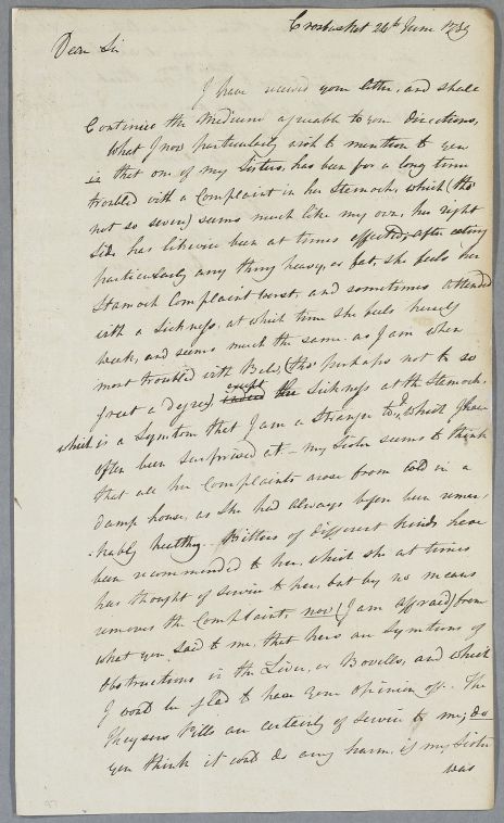 [ID:6237] From: Colonel D Muirhead / To: Dr William Cullen (Professor Cullen) / Regarding: Colonel D Muirhead (Patient), Miss Muirhead(?) (Patient) / 24 June 1789 / (Incoming)