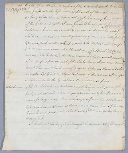 | Summary | Part of a report on a postmortem of a male patient. Mention of a tumour. Undated. |