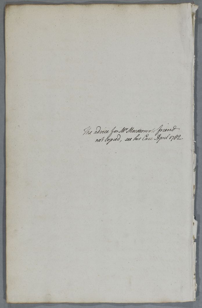 | Summary | Note on the advice for Mr Macdermot's friend not being copied]. |
