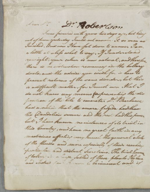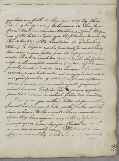 | Summary | Reply to Dr. Robertson. Latin testimonial on the merits of dandelion in preventing gallstones. |