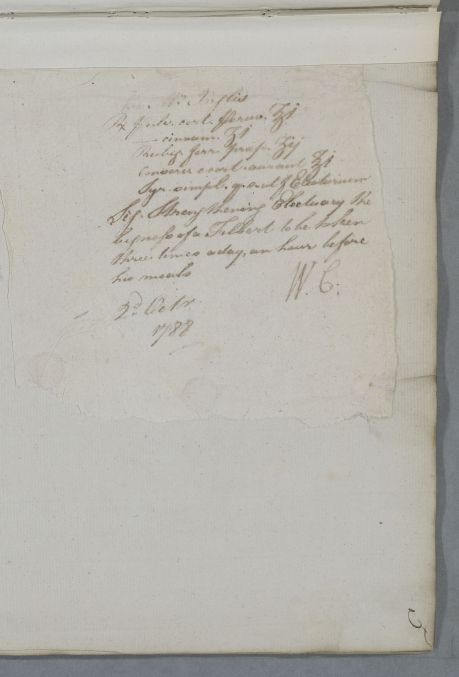 Case of a Mr Inglis who is prescribed a strengthening electuary in October 1788. |